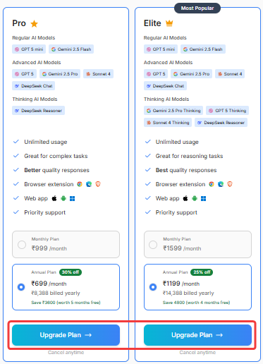 Once you've chosen your plan and subscription duration, click on the "Upgrade Plan" button. This action will take you to the payment gateway page.