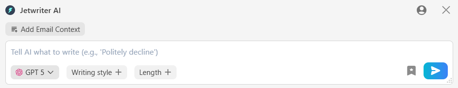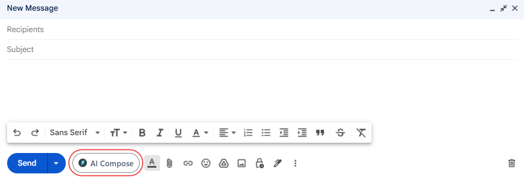 • Launching Jetwriter AI: Click the "AI Compose" button in the email compose toolbar to launch the tool.