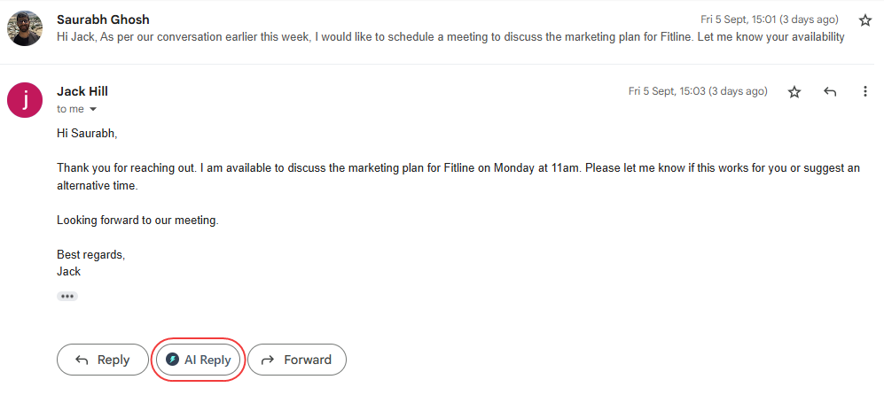 • Insert or Regenerate/Edit the Reply: Once happy with the generated response, click on the "Insert" button. The response will be added to your email reply box.