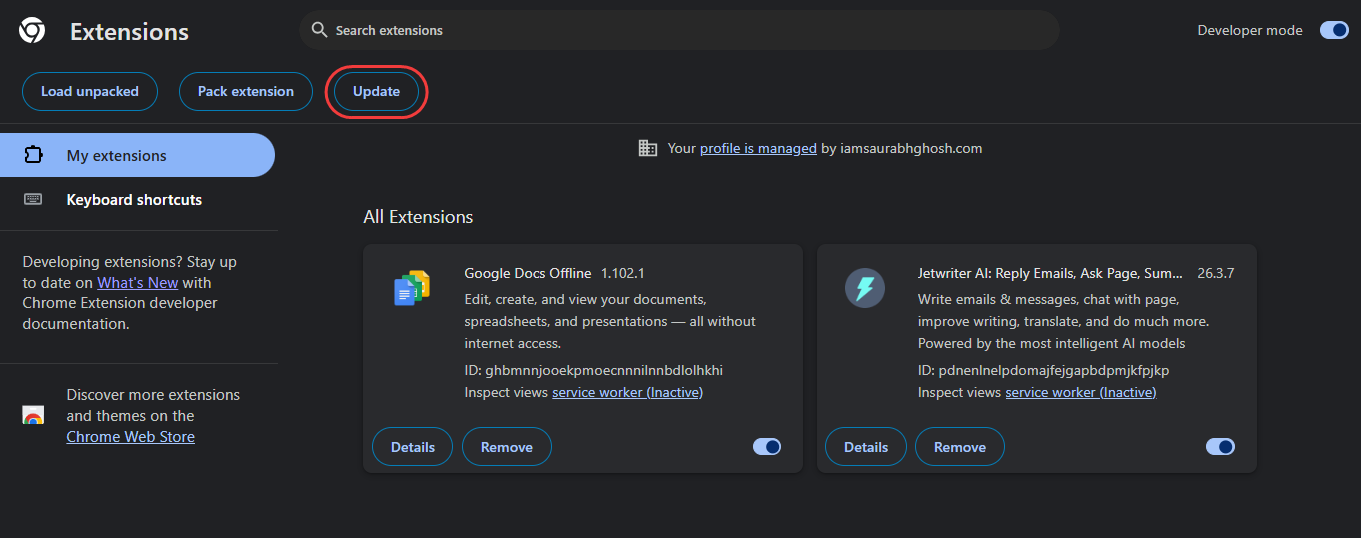Jetwriter AI Chrome extension usually checks for updates every few hours and then updates on its own. Most users get updates this way. New features just appear without any action. But sometimes, the update does not happen right away. If you are not seeing new features or fixes, you can follow this guide to update the extension yourself.