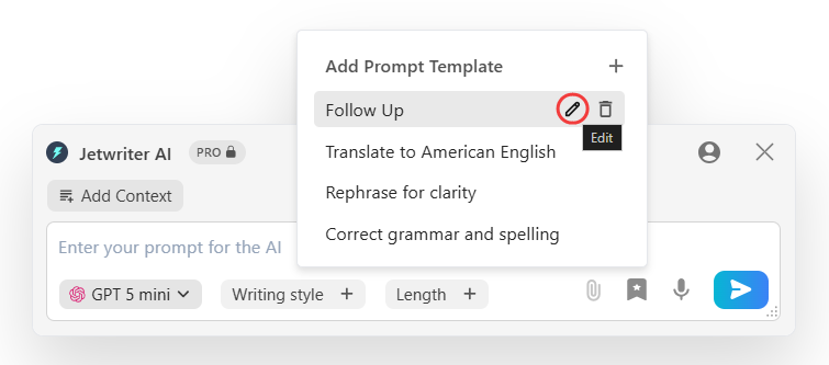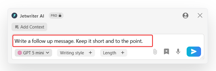 When you launch Jetwriter AI, a starting instruction pops up in the text box right away. This is your default prompt template. For example, it might say, "Reply to this email."