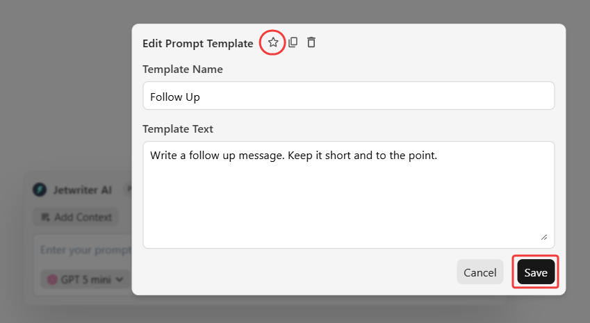 Navigate to Prompt Templates: Launch Jetwriter AI. Go to the section where you add your prompt templates.